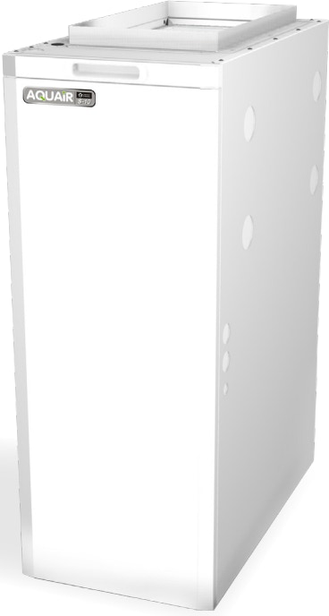 The Aquair fits in where your old warm air boiler used to be, but instead of having a gas burner built in as an integrated unit, the Aquair uses a hot water supply generated by a separate combi boiler fitted either nearby or somewhere else in the house.