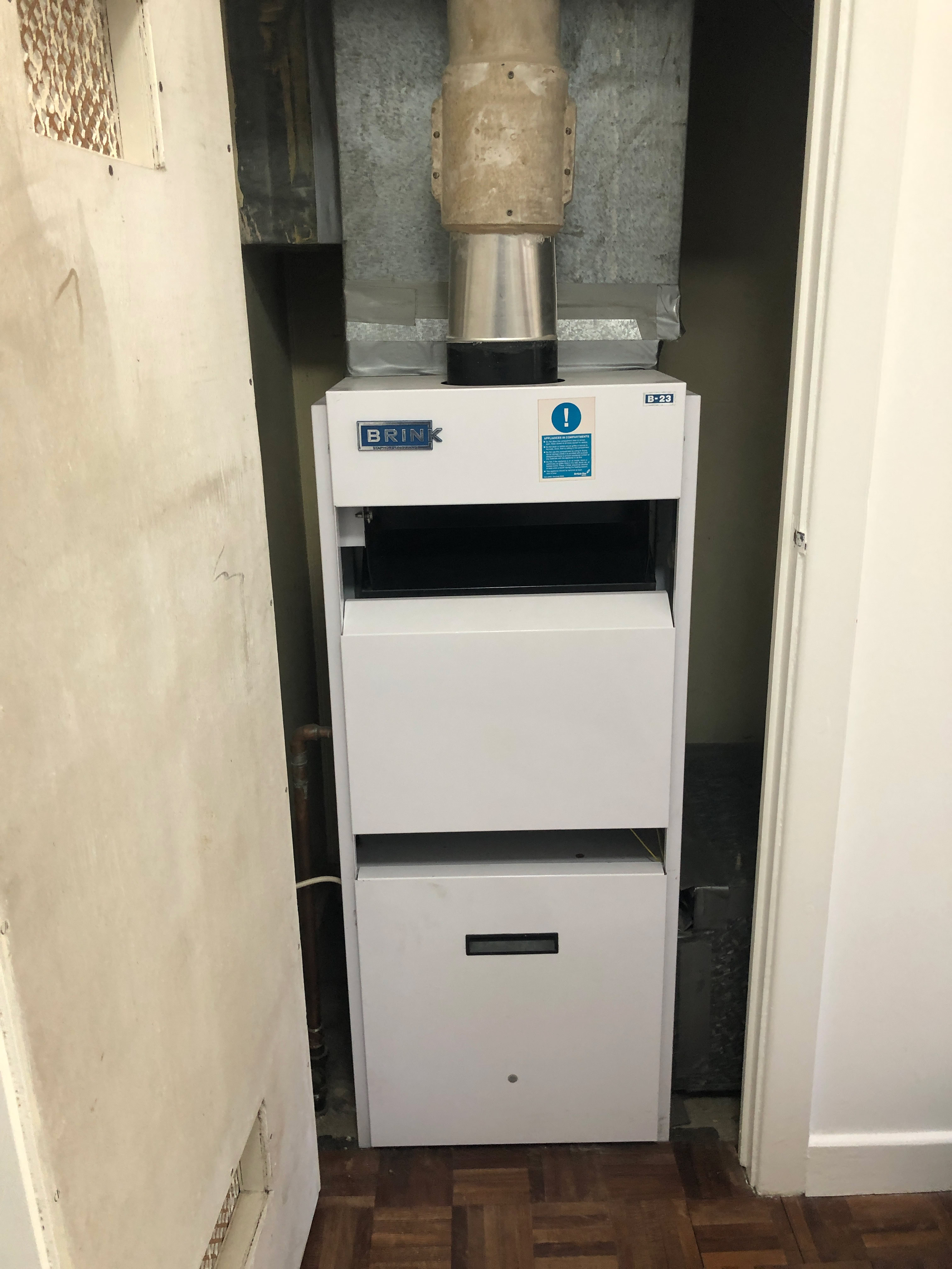 Brink boilers were for a few years back in the 1990s, imported and sold by Johnson and Starley. Brink are a Dutch firm making warm air heaters and ventilation systems. I encounter few of these nowadays but they are sturdily constructed, durable, basic and reliable.